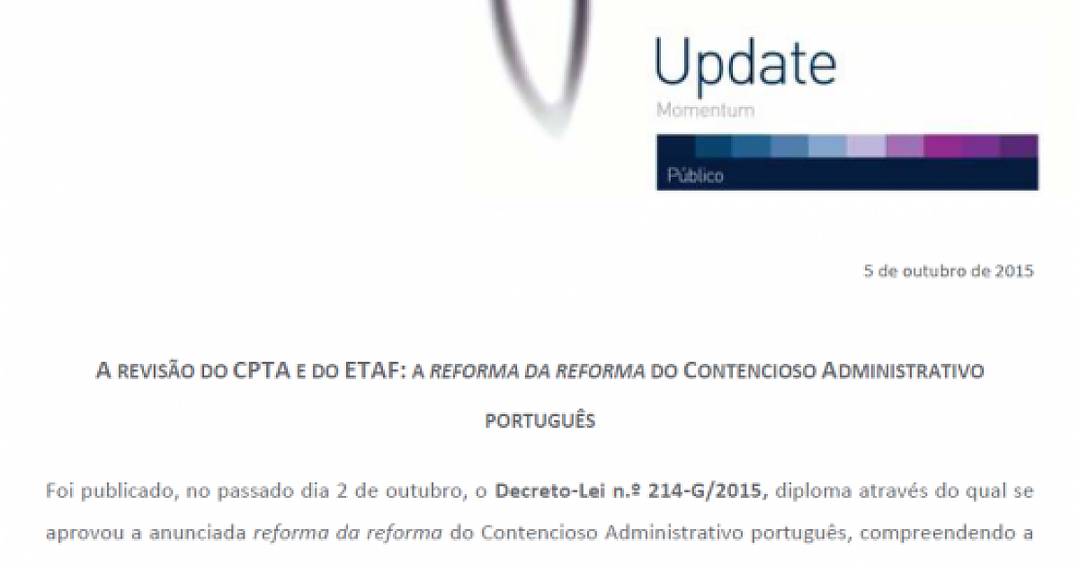 Foi publicado um artigo sobre a revisão do Código de Processo nos Tribunais Administrativos e do Estatuto dos Tribunais Administrativos e Fiscais, da autoria de José Duarte Coimbra, advogado estagiário da SÉRVULO na área de Público.