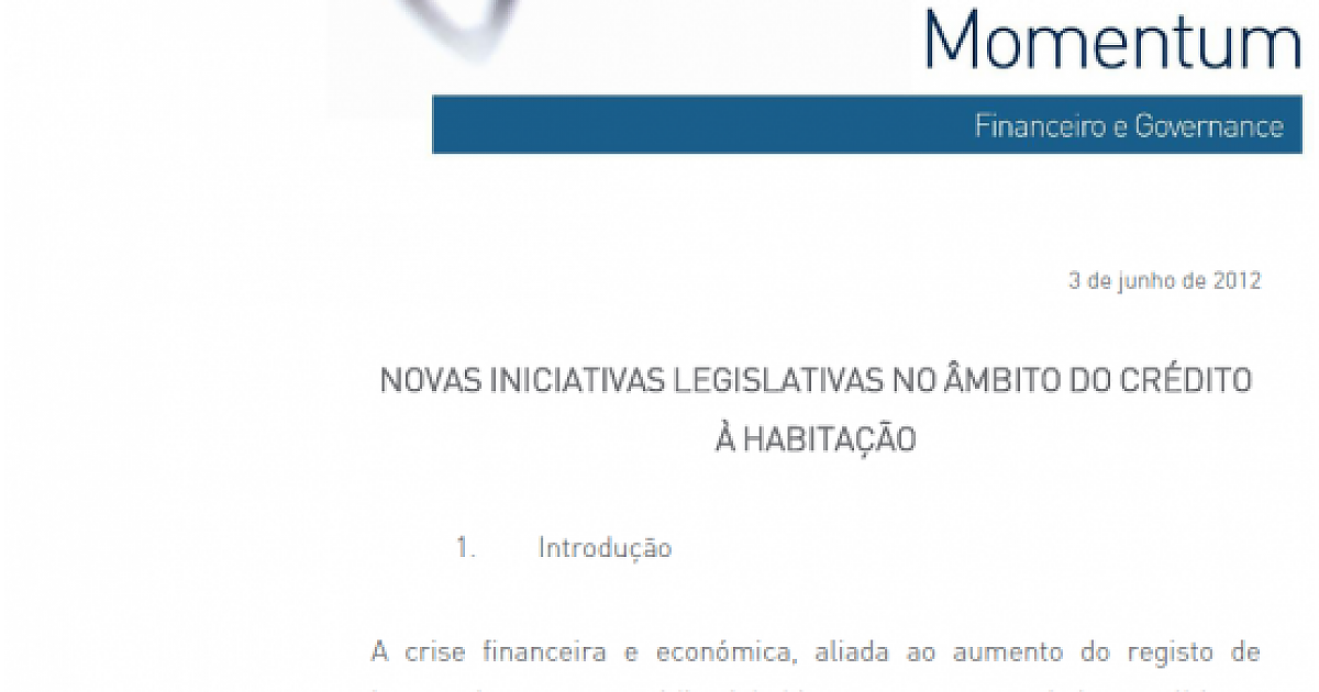 Novas iniciativas legislativas no âmbito do crédito à habitação